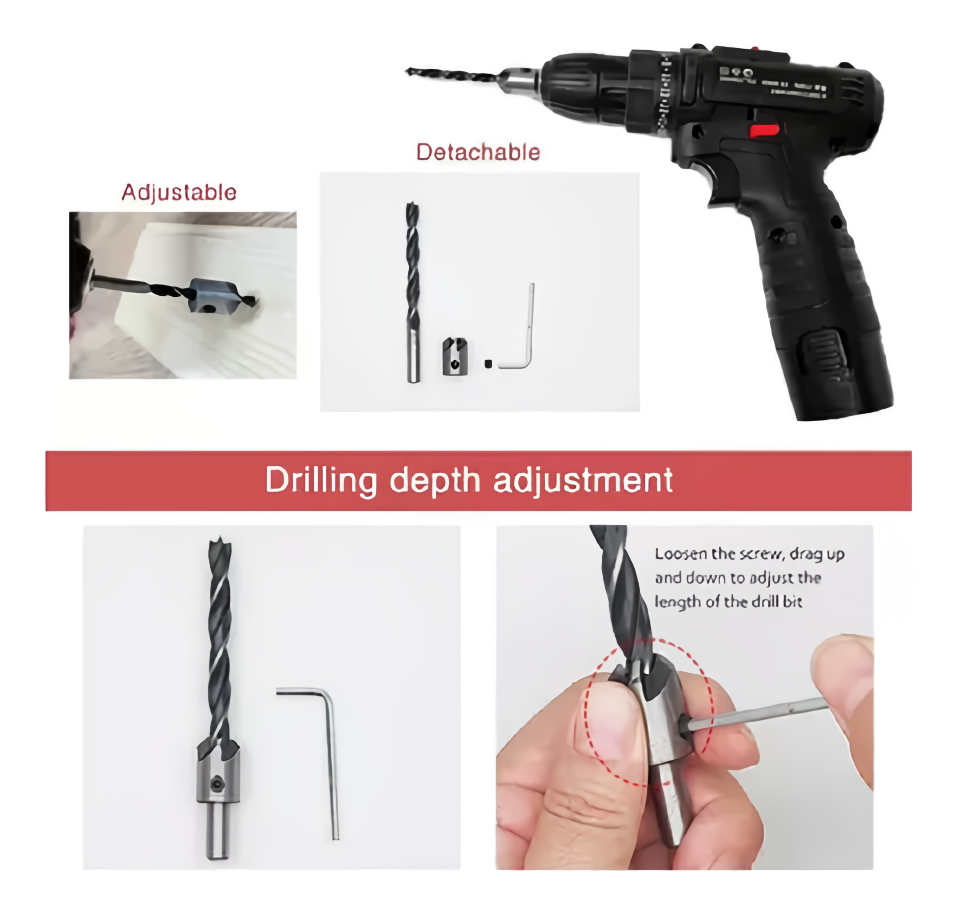 - **Extraíbles y ajustables**: las brocas avellanadoras se pueden desmontar y ajustar fácilmente con la llave hexagonal que se incluye en el juego. Así podrás regular la profundidad del avellanado según tus necesidades y preferencias.