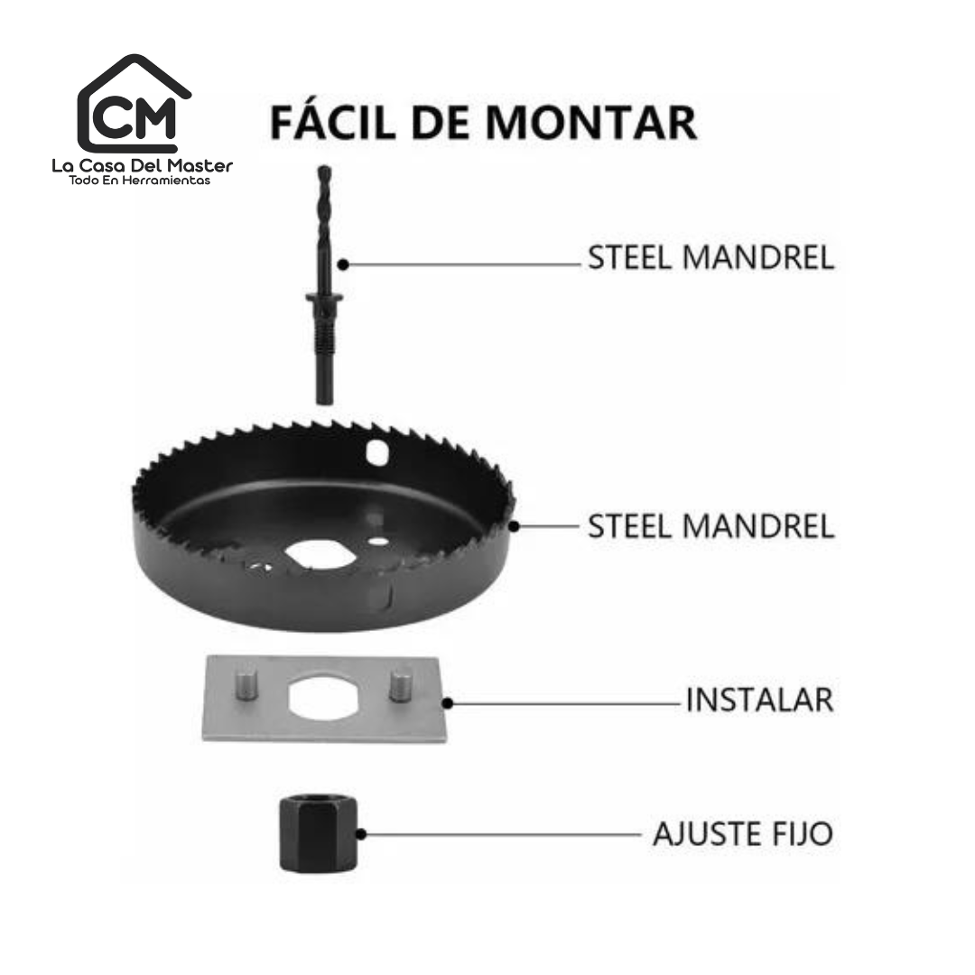 - 1 llave hexagonal, para ajustar y cambiar las sierras copa con facilidad.
