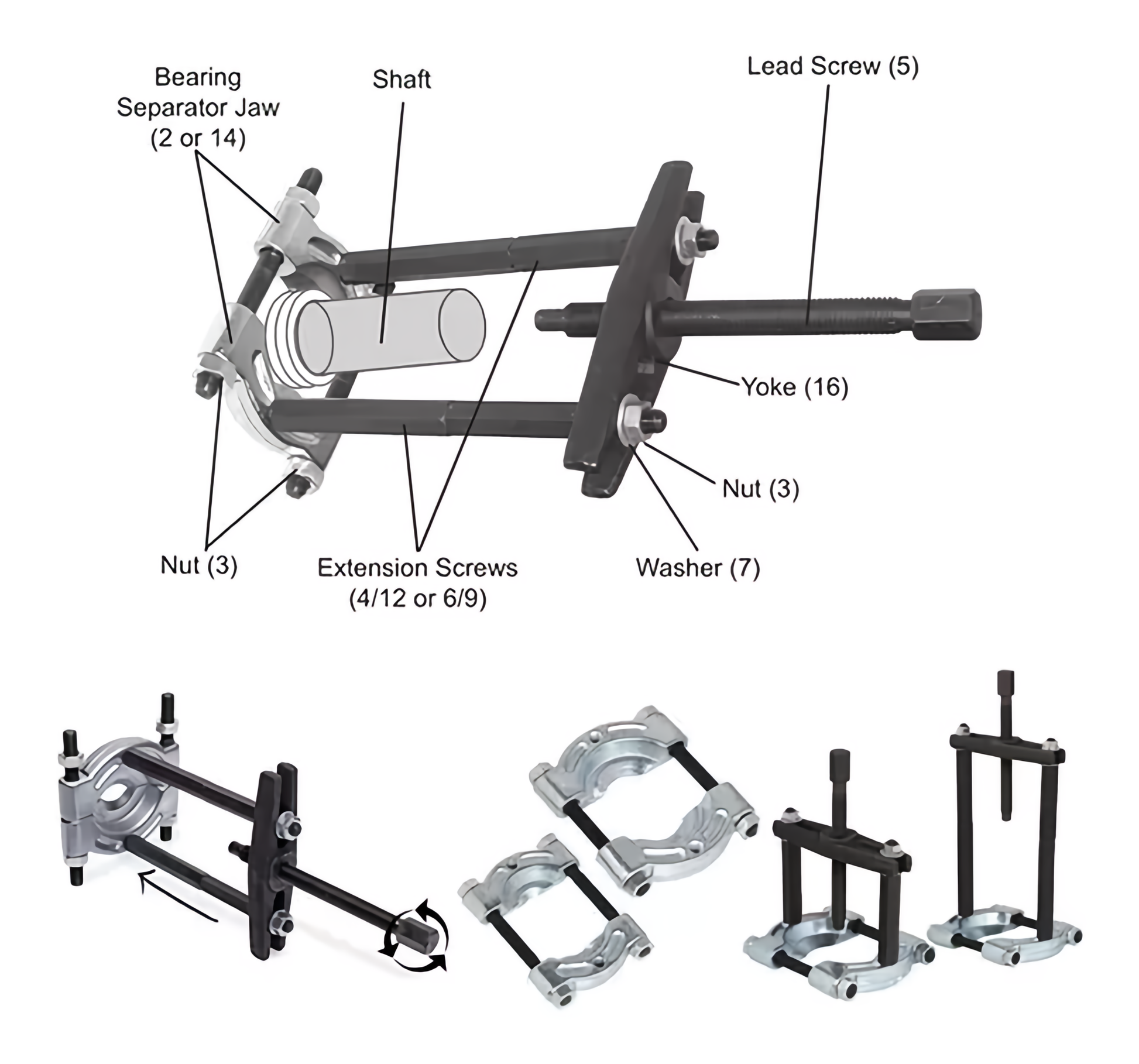 - Retire o instale rodamientos y casquillos de forma rápida y sencilla.