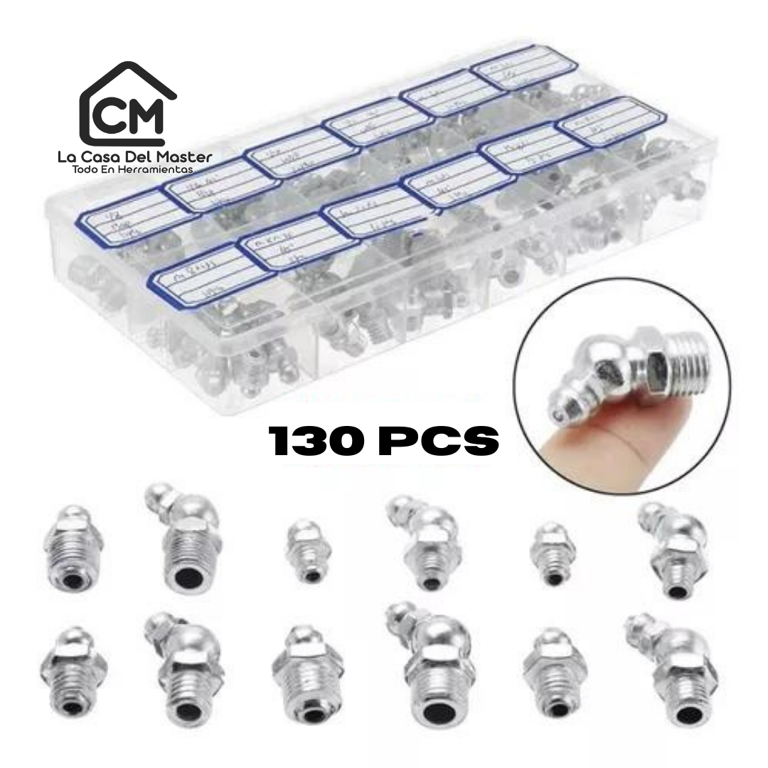 Kit surtido de engrasadores hidráulicos de 130 piezas