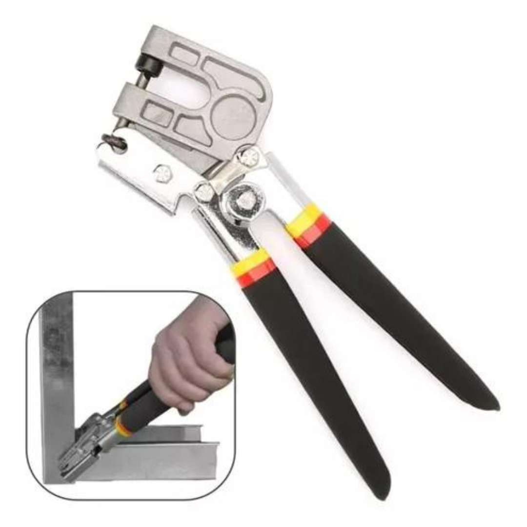 Con esta herramienta, podrás unir perfiles de chapa, metal, metalcon montante estructural y marcos para placas de yeso de forma rápida, fácil y segura, sin necesidad de usar tornillos o remaches.